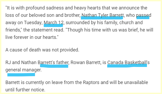 He came from Duke and was drafted by the New York Knicks. His brother is announced dead on the 74th day of the year.