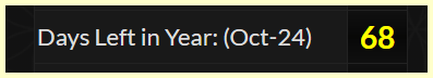 October 24th is the day leaving 68 days left in the year.