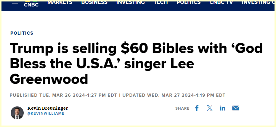 March 28, 2024 Trump and the 60 dollar Bible. More 60 Rituals to document with Trump. GIVE KNOWLEDGE AND SHARE THIS! Click to share on Facebook (Opens in new window) Facebook Click to share on Telegram (Opens in new window) Telegram Click to share on X (Opens in new window) X Like Loading... Related