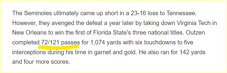 Dead on the 121st day of the year. Finished his career with 72 of 121 passes …
