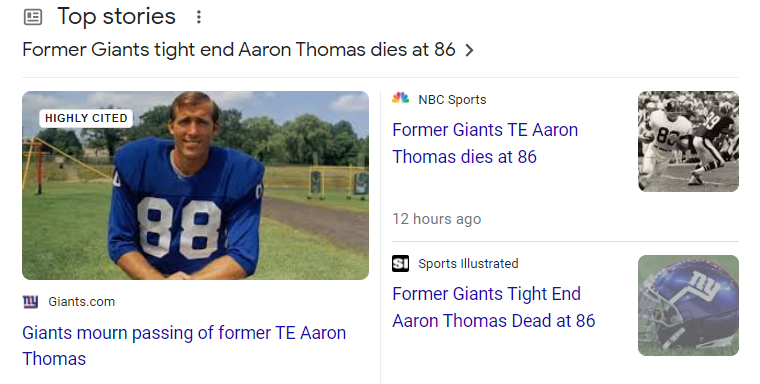 May 4, 2024May 4, 2024 Aaron Thomas, Pro Bowl tight end with Giants, dies at age 86 Dead at age 86 He dies 172 days from his birthday Dead at 86 and also dies 121 days from his draft anniversary. GIVE KNOWLEDGE AND SHARE THIS! Click to share on Facebook (Opens in new window) Facebook Click to share on Telegram (Opens in new window) Telegram Click to share on X (Opens in new window) X Like Loading... Related