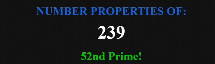 This is also the day leaving 239 days left in the year. the 52nd Prime.
