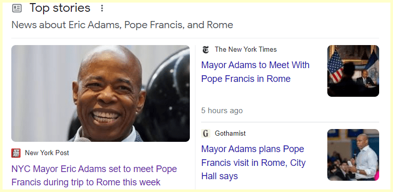 Eric Adams will visit the Pope this week. This headline comes on the 127th day of the year.