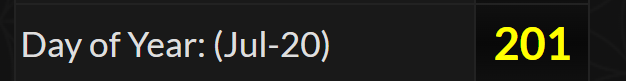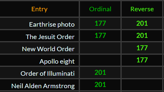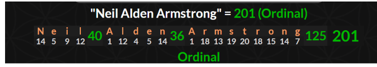 Follows the pattern and lie of Neil Armstrong walking on the moon on the 201st day of the year.