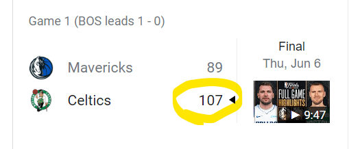Celtics just won Game 1 with 107 points