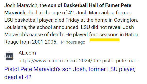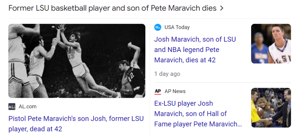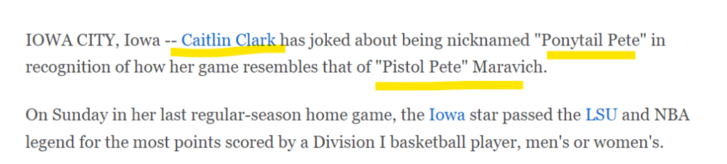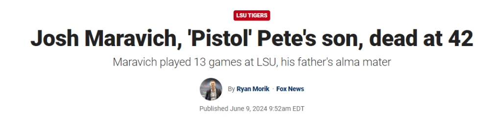 The articles mention Josh’s death then immediately talks about his father and Caitlin Clark who is buzzing in the news lately.
