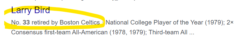 Larry Bird wore number 33 and Josh was nicknamed BIRD