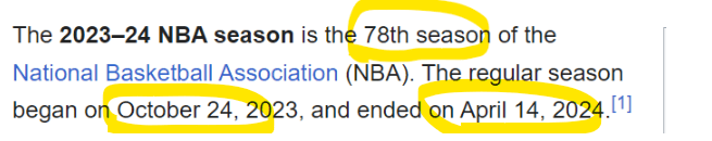 The NBA season ended on 14/4 and Game 4 is 144 days from the election
