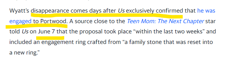 Missing Just days after a source, exclusively close to Teen Mom The Next Chapter, told them of the engagement on June 7th.
