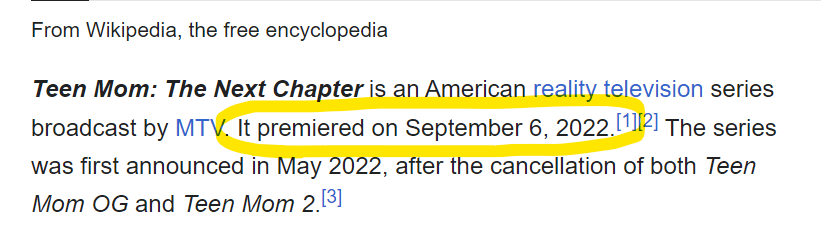 Teen Mom the Next Chapter premiered on Sept 6th. 6/9 or 9/6