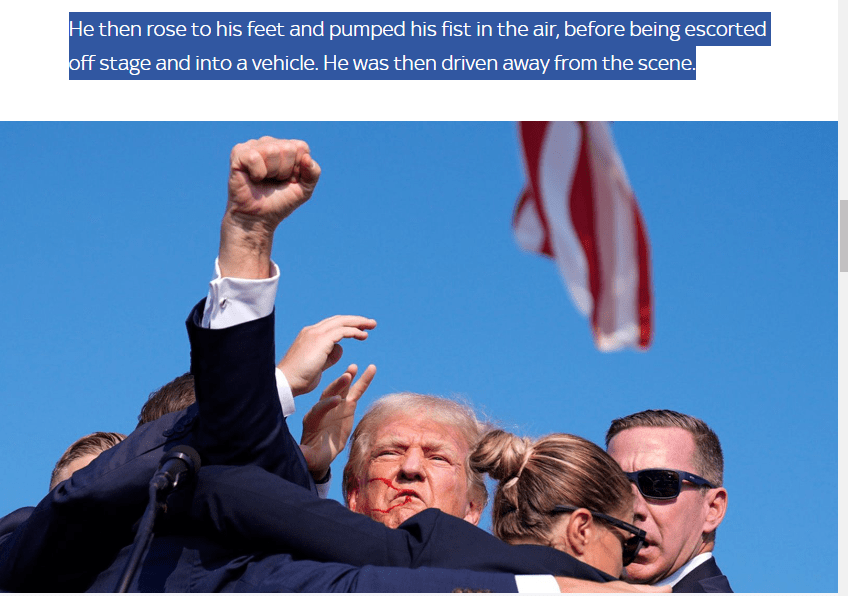 Video appeared to show blood on his ear as he was taken away. The former president appeared to be clutching the side of his head as he fell to the ground.