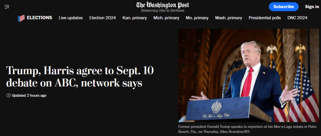 Former president Donald Trump and Vice President Kamala Harris have agreed to a Sept. 10 debate on ABC, the network said Thursday. They announce this 33 days before the meeting.