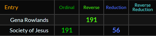 She also died 56 days from her own birthday which we know is connected to the Society of Jesus.