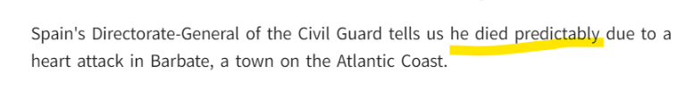 This ritual comes on 25/8 and 6*6*6=216 from Barbate Spain. His death is said to be a predicted Heart attack….