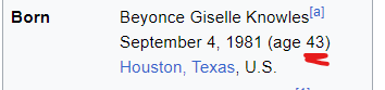 Beyonce is 43 and they waited until 251 days after her birthday and 115 days before her next birthday to announce her death.