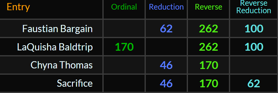 She also dies 144 days from the season ending. Quisha dies on Biden’s birthday. Trump just won the election 144 days from his birthday.