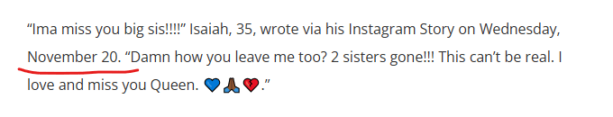 She died 30 days after the season starts. He posts 21 broken heart emojis