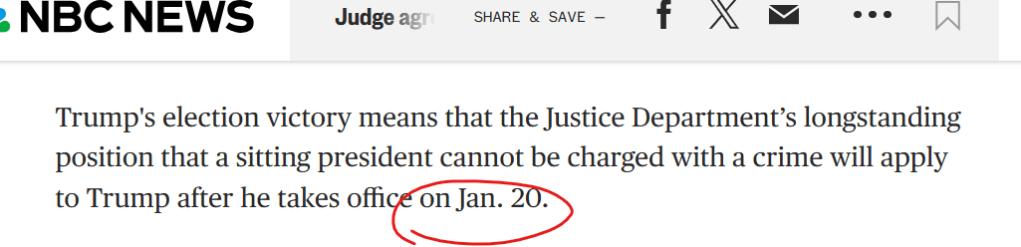 Trump’s charges are dropped 201 days from his birthday. New Presidents are inaugurated on 20/1 for a numeric ritual.