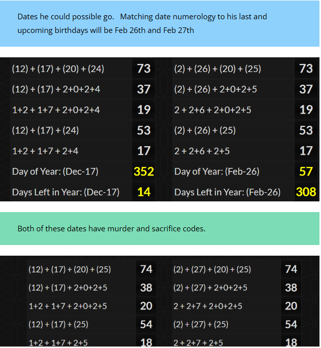 This will be 282 days from his birthday. This number was associated with why the War in Israel started when it did.