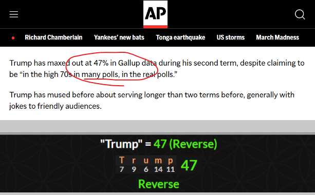 Trump has maxed out at 47% in Gallup data during his second term, despite claiming to be “in the high 70s in many polls, in the real polls.”