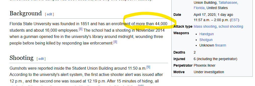 This comes 10 years and 148/149 days after the last mass shooting at FSU