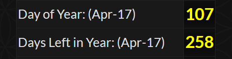 Mass Shooting on 17/4. Today is the 107th day leaving 258 days.
