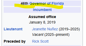 Ronald Dion DeSantis is VERY INTERESTING in this story. The 46th Governor of Florida at age 46.