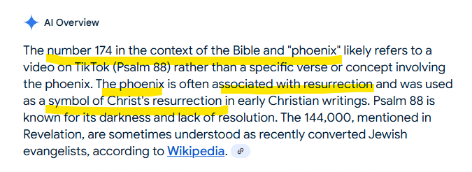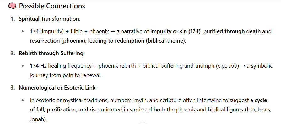 What does CHATGPT tell us about 174, the bible, and phoenix.