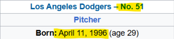 He is born 11/4, wears number 51, sacrifices daughter on the day leaving 66 days and announced her death 210 days from his next birthday.
