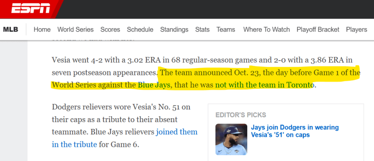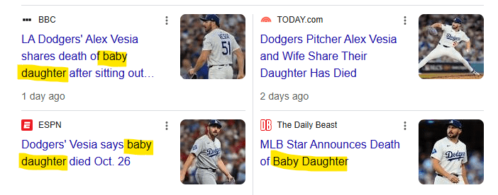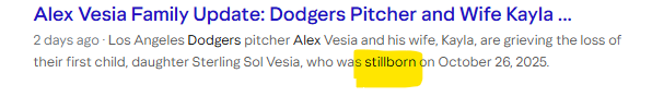 11/7 The Dodgers announce the death of Pitcher Alex’s baby daughter.