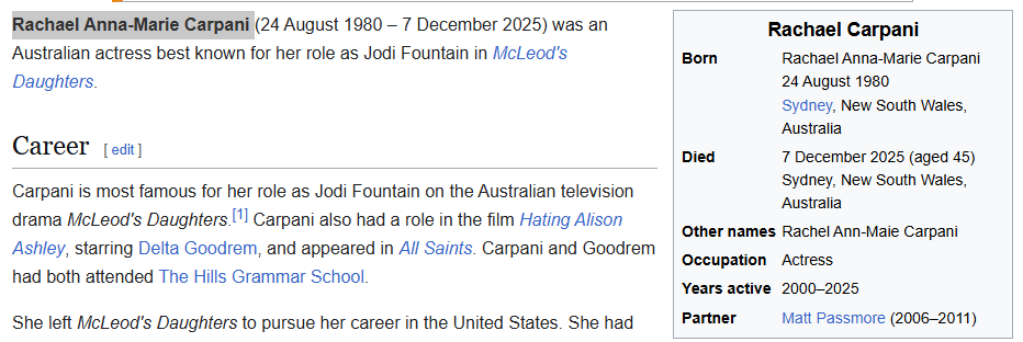 December 16, 2025December 16, 2025 12/7 Kill Date Victim Rachael Carpani. GIVE KNOWLEDGE AND SHARE THIS! Click to share on Facebook (Opens in new window) Facebook Click to share on Telegram (Opens in new window) Telegram Click to share on X (Opens in new window) X Like Loading... Related
