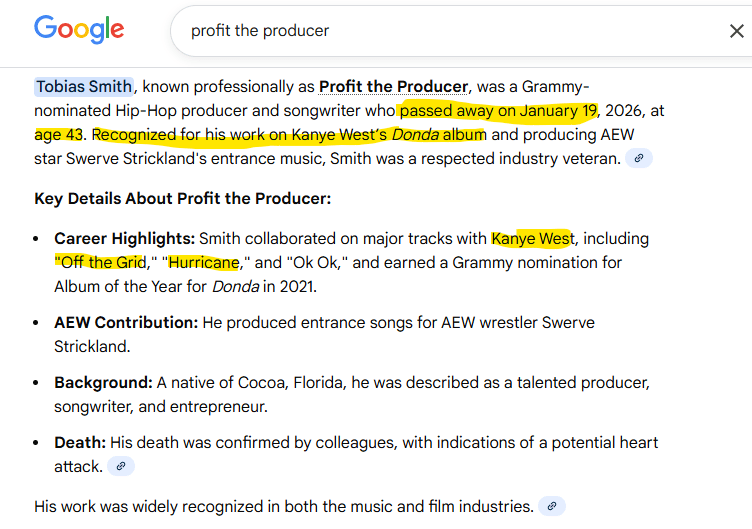 Known for his collaboration on the DONDA album with Kayne West. Dead at age 43 like so many others.