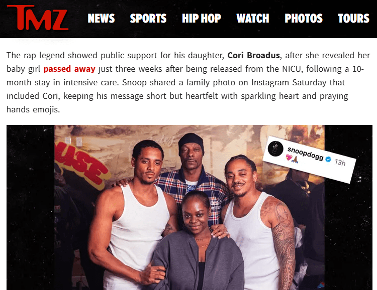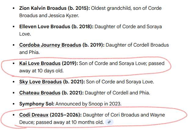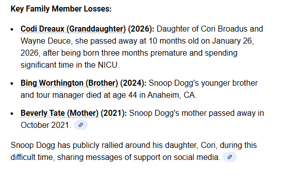 Snoop Dogg has lost 2 grandchildren One on 9/25/19 and one 1/26/26