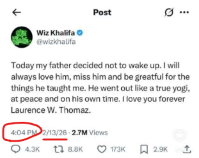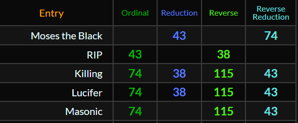 The 44th day, posts at 4:04 and he is 38 years old. All big murder/death numbers