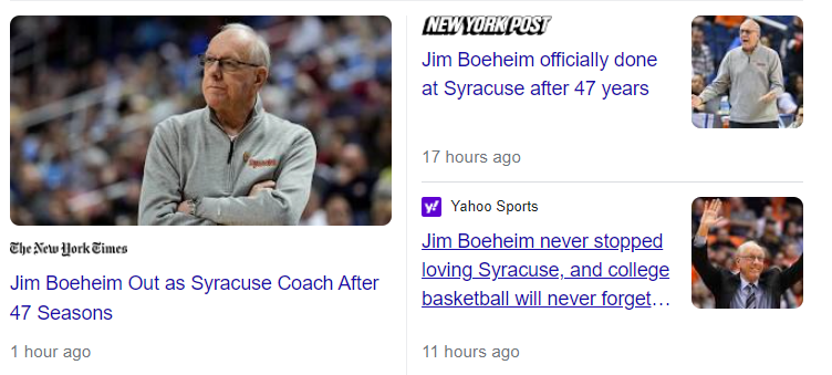Jim Boeheim retires as Syracuse Coach After 47 Seasons. Last game was March 8th and Headline News on the 9th