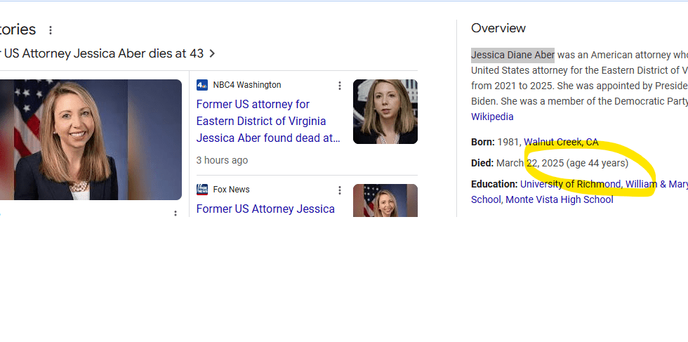 Former US Attorney Jessica Aber found dead in Virginia at 43