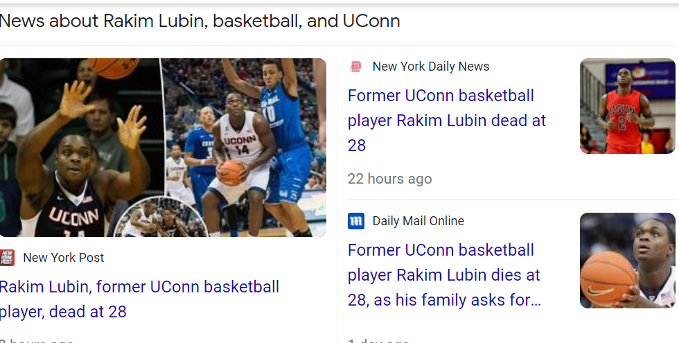 Kill Date Headlines, Rakim Lubin, a former college basketball player with UConn, died Sunday. He was 28.
