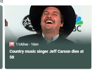 Country music singer and songwriter Jeff Carson, dead age 58, another sacrifice by the jesuit order cabal.
