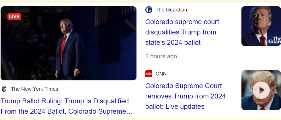 Follow up: Trump speaks out on Colorado Disqualification …. Donald Trump removed from Colorado Election Ballot 322 days before Election.